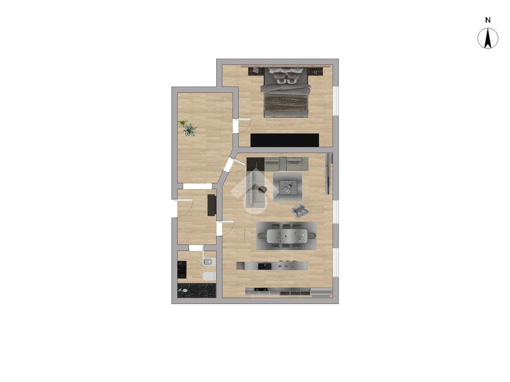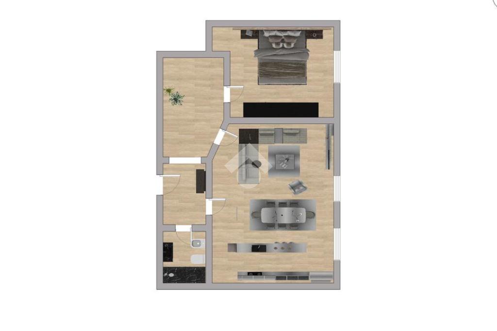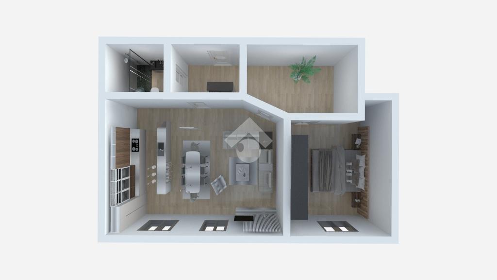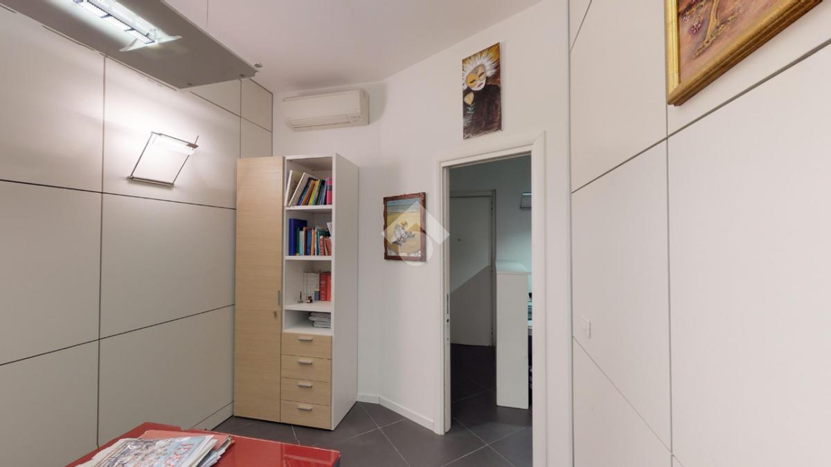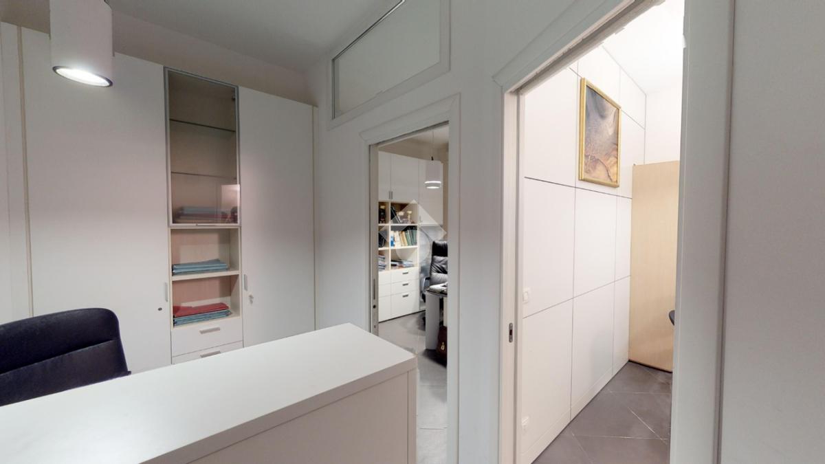 La soluzione si compone di ingresso su disimpegno che distribuisce in modo razionale gli ambienti, cucina abitabile, soggiorno e camera da letto, con spazi ben proporzionati e facilmente adattabili a diverse esigenze, sia professionali sia residenziali.