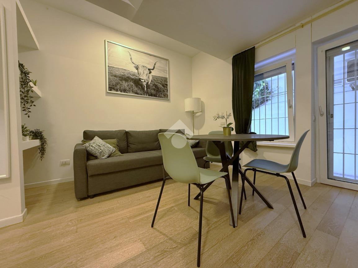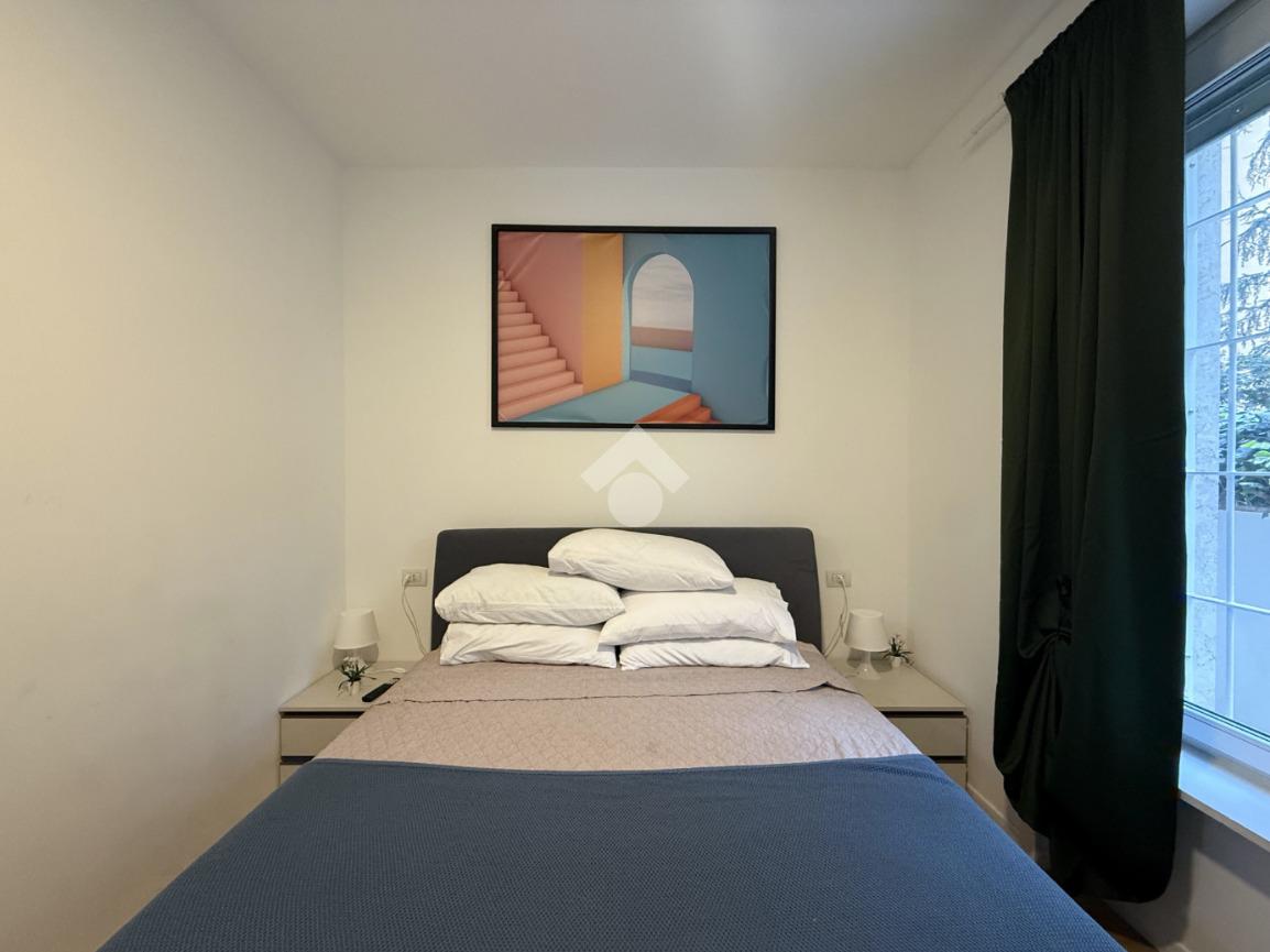 L’appartamento, di circa 45 mq, è situato al piano seminterrato, ma risulta particolarmente piacevole e luminoso grazie alla presenza di ampie finestre con affaccio sul curato giardino condominiale, che garantiscono tranquillità e riservatezza, creando un’atmosfera silenziosa e rilassante nel cuore della città.