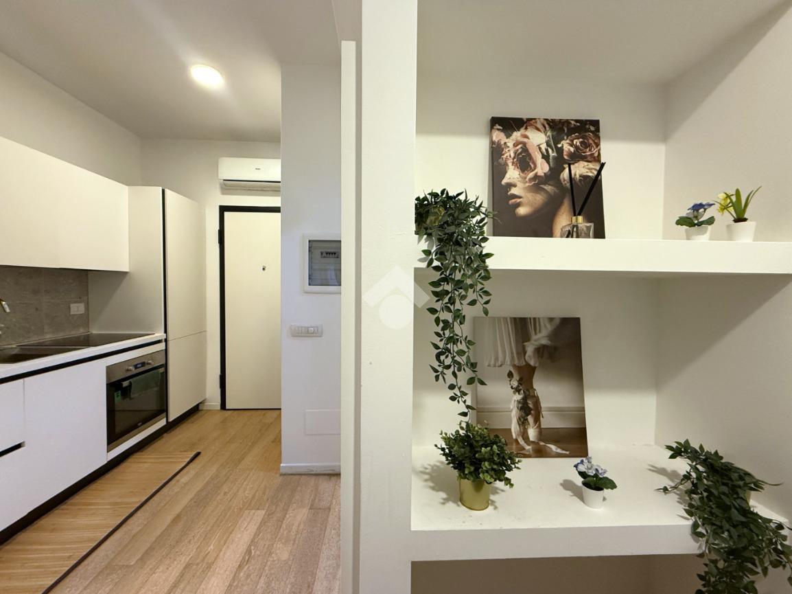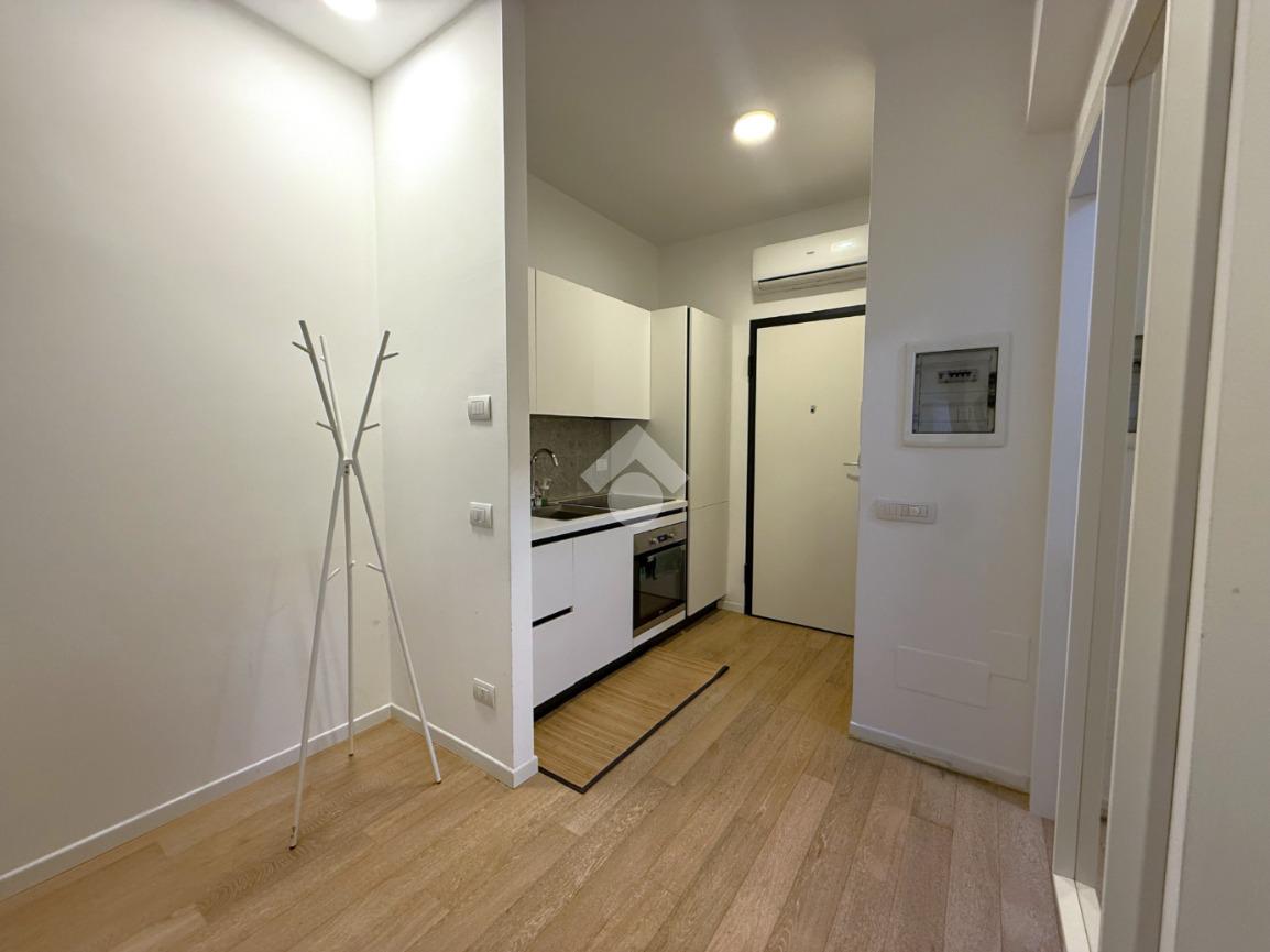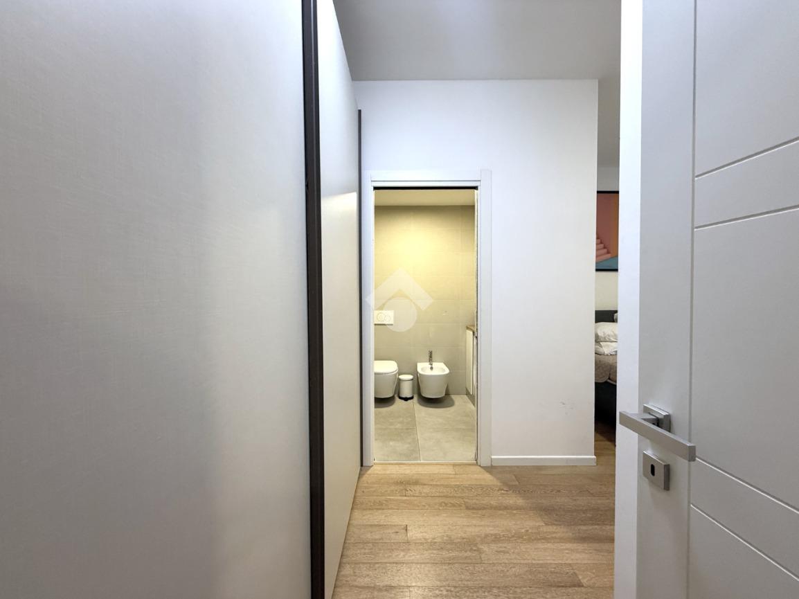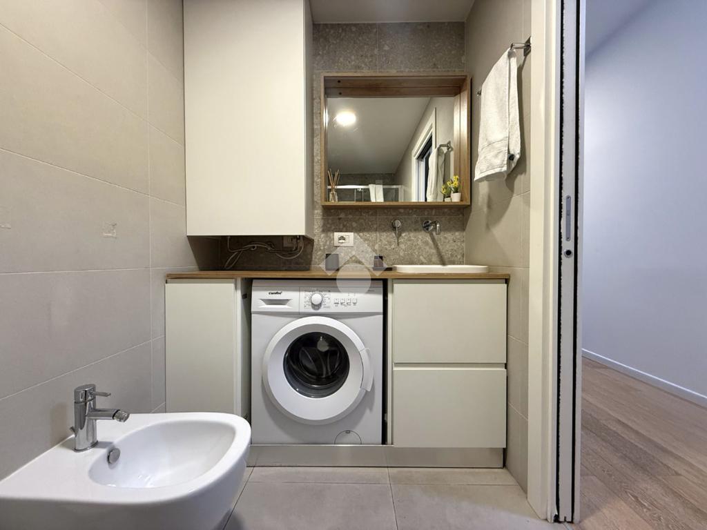 Gli spazi interni sono stati ottimamente organizzati: l’ingresso conduce alla zona living con cucina a vista, un ambiente accogliente e contemporaneo pensato per la vita quotidiana. La zona notte è composta da una camera matrimoniale ben proporzionata, mentre il bagno en-suite, moderno ed elegante, è dotato di ampia doccia e finiture curate.