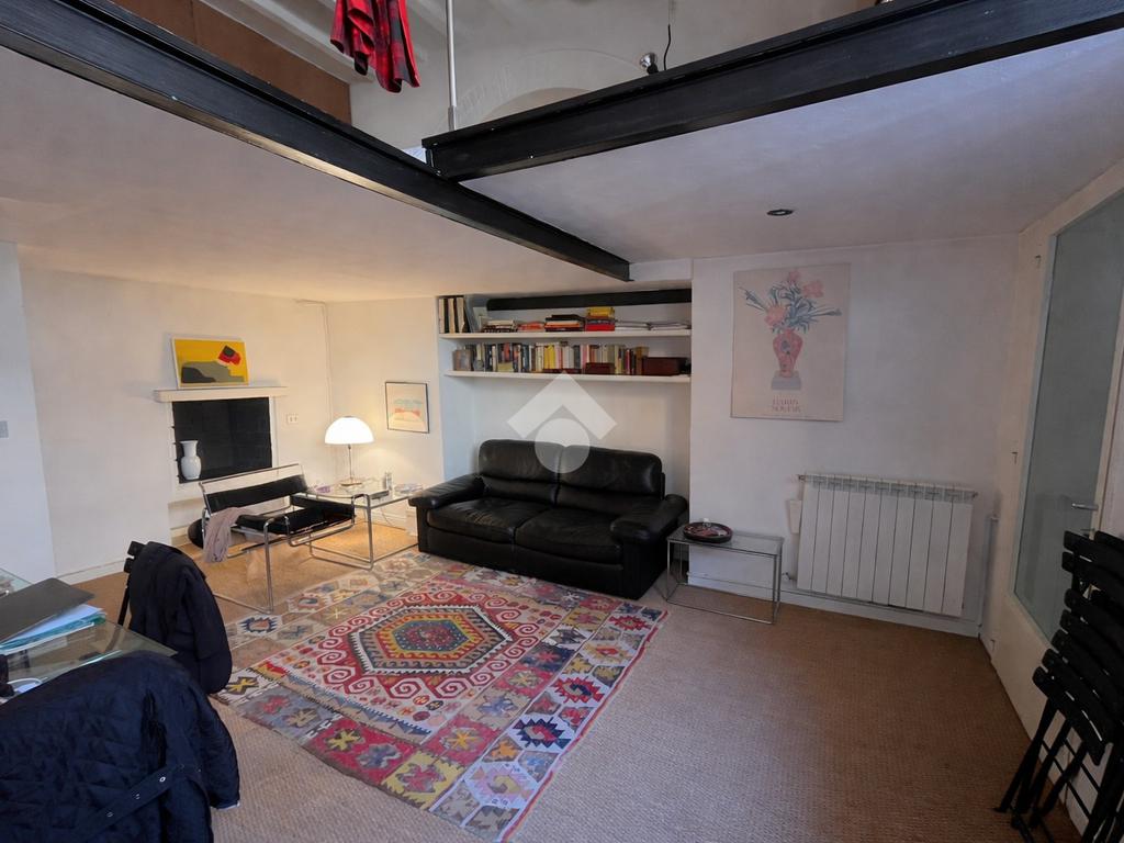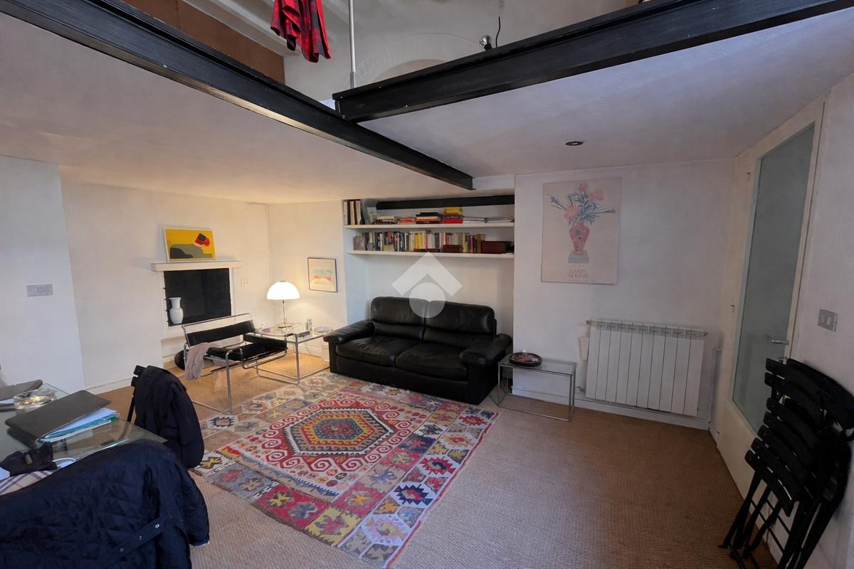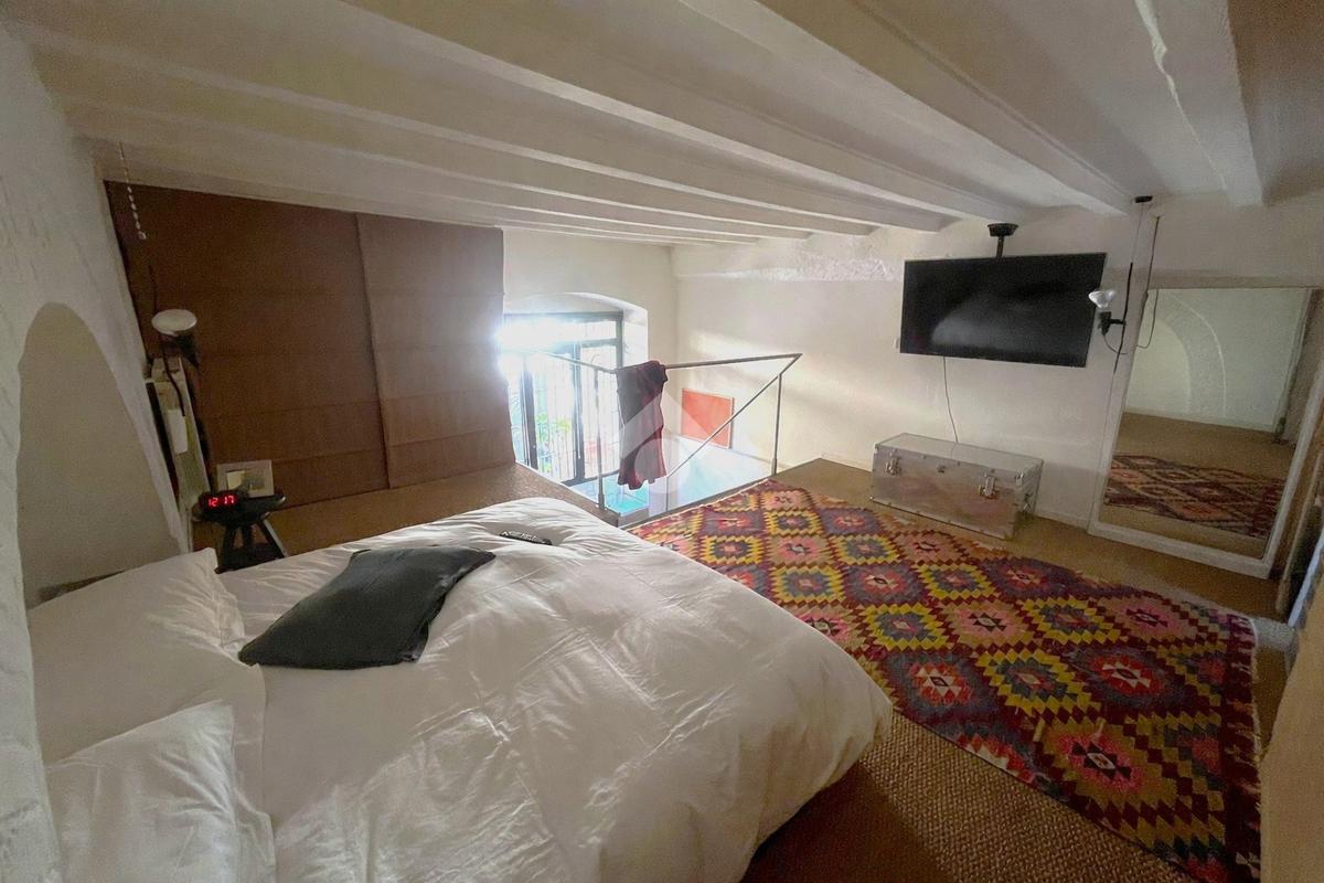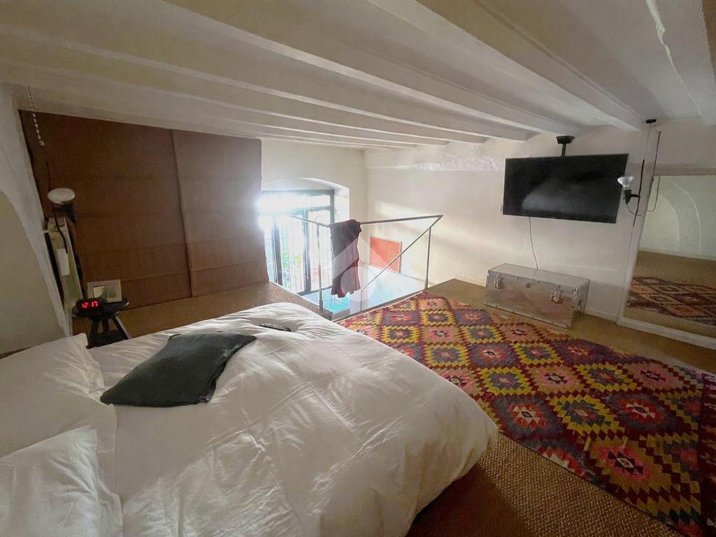 La zona notte si trova sul suggestivo soppalco, un ambiente intimo e raccolto arricchito da travi a vista e dettagli architettonici originali, perfetto per creare un angolo notte accogliente e riservato.